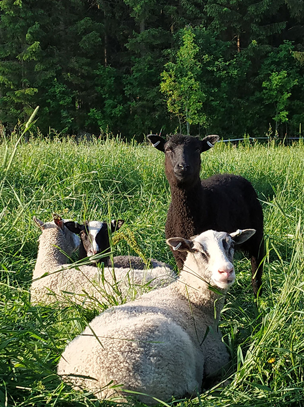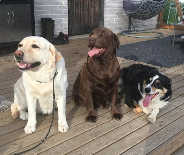 Pinja ja Lumi ovat neljävuotiaita ja karjatilalla työkoirana toimiva Hugo kuusivuotias. Tälle kolmikolle kelpaa rapsutukset, tule tutustumaan!